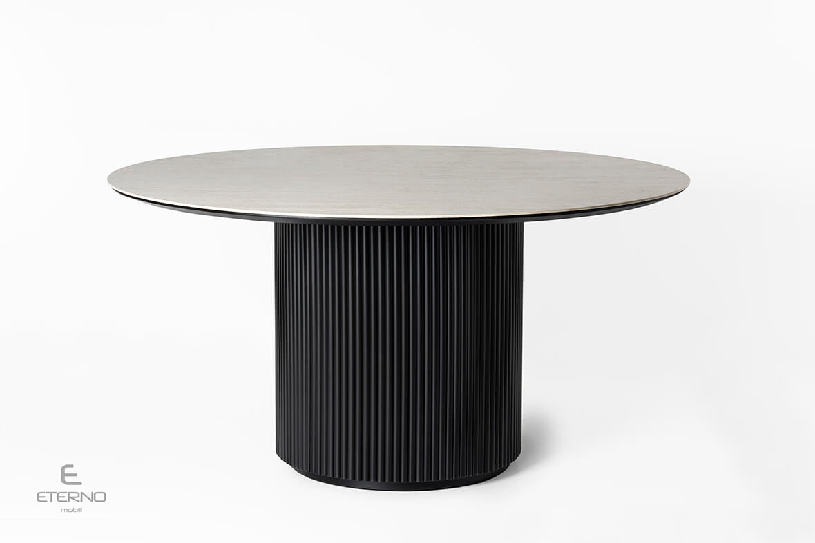 Η ροτόντα “icon” αποτυπώνει μια αρμονική συνύπαρξη κεραμικής επιφάνειας και γραμμωτών ξύλινων κυλινδρικών βάσεων, προσφέροντας μια ατμόσφαιρα απόλυτης κομψότητας.